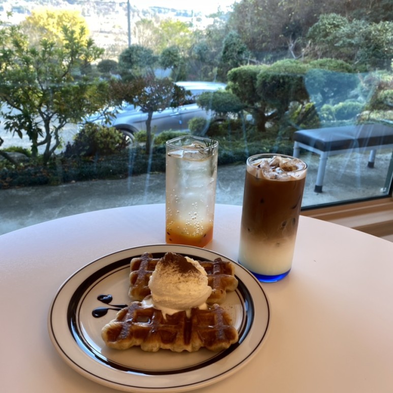 패션후르츠에이드와 블루문라떼, 크로와플을 주문했어요