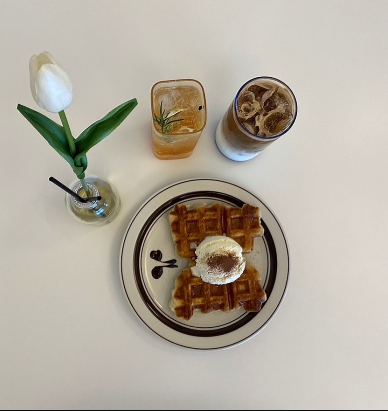 크로플이 쫀득해요~! 저는 바삭한걸 좋아하기에 조금 더 구워졌으면 하는 마음..!!