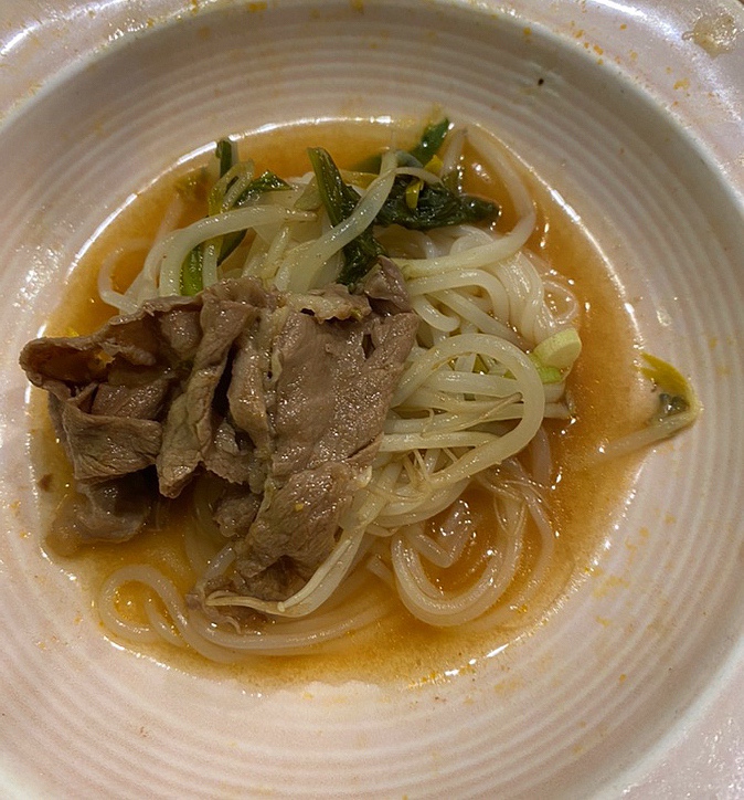 잘익은 숙주와 쌀국수를 그릇에 덜어주시고 바로 단호박계란죽을 만들어주세요!!