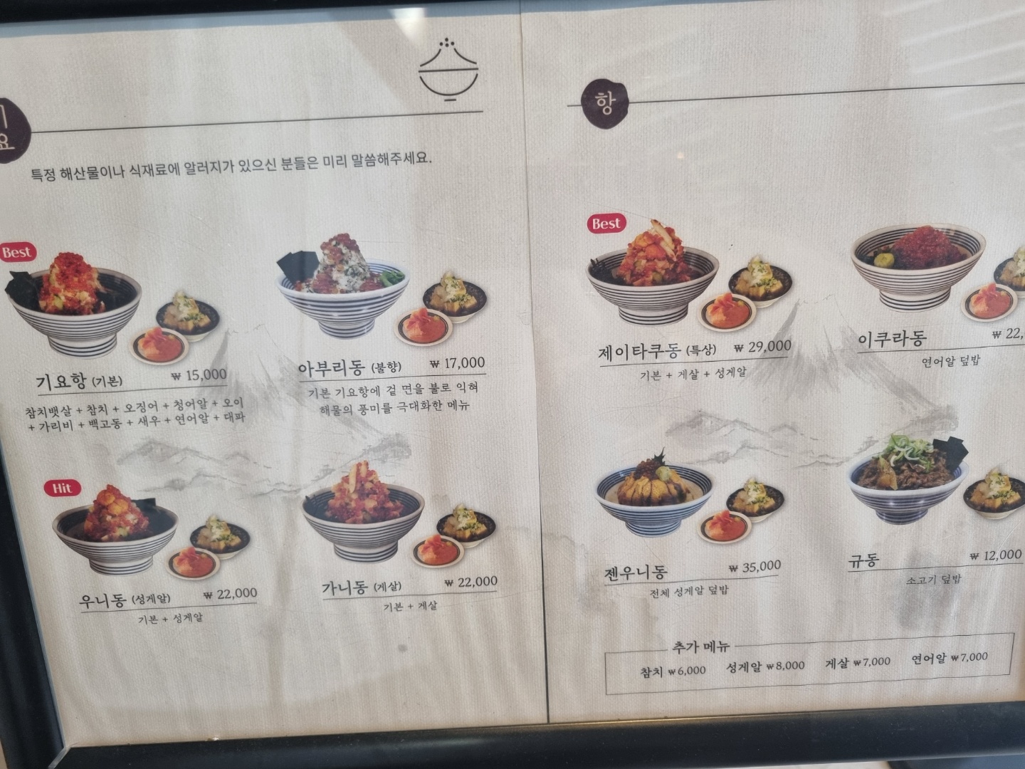 기요항 기본과 우니동을 주문했다