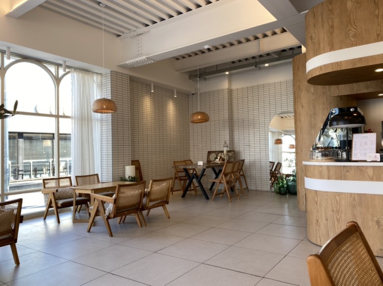 화이트톤에 통유리창으로 꾸며진 카페에 들어가면~!